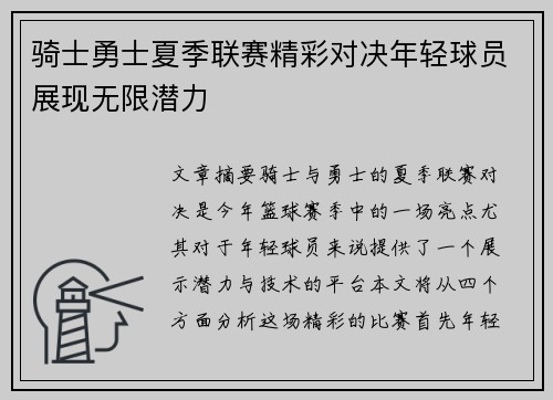 骑士勇士夏季联赛精彩对决年轻球员展现无限潜力